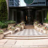 桜の造木をメインに春の草花でビルエントランスを飾りました。